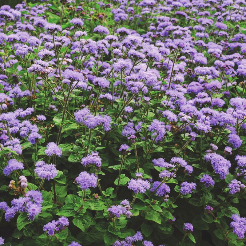 Ageratum are sun loving plants that produce an abundance of uniquely textured fuzzy blooms. This landscape ageratum offers dense, mounded hedges of color compared to other bedding types. Sell in premium packs and in 4" pots.