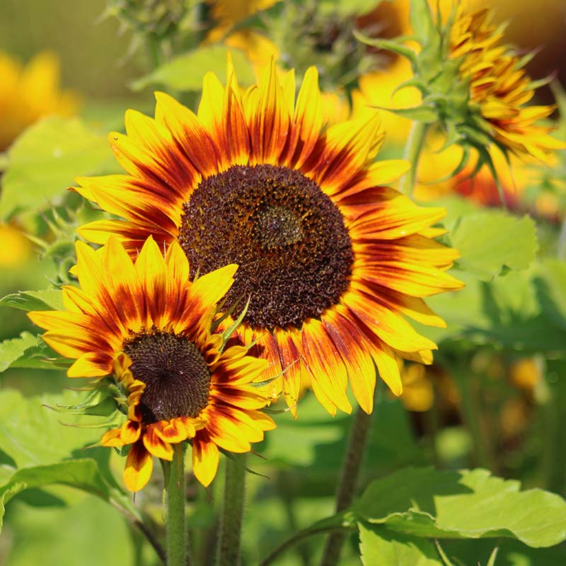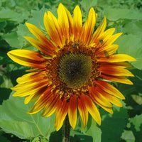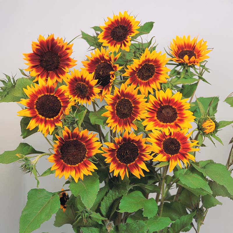 This All America Selections winner produces attractive, stable bicolor patterned flowers on mid-height plants. The 5 to 6" single-petaled flowers develop dark red around the base of each petal, golden yellow tips and a dark central disk. Plants are heavily branched, with excellent yields for cuts and a showy display for gardens.