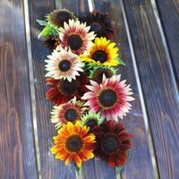 Looking for something easy to grow that reflects the bright colors of summer? Then try our popular sunflower collection and you won't be disappointed. Our taller sunflower varieties have been selected for this collection to grow as garden backgrounds, or to be cut and brought indoors. A range of colors adds enough diversity to keep it interesting. Collection includes: 50 seeds of Sunrich Orange; 50 seeds of Ring of Fire; 50 seeds of Infrared Mix; 50 seeds of Valentine; 50 seeds of Soraya; 50 seeds of Frilly.