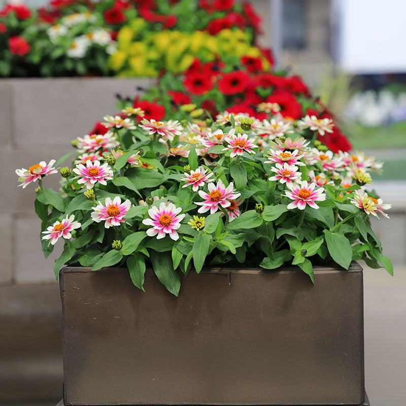 The tolerance for both cool and hot humid conditions, along with excellent disease and weather tolerance make this a favorite garden zinnia series. Plants are covered with an abundance of big blooms in both single and double forms. Bloom size: 2". Bloom type: Semi-double.