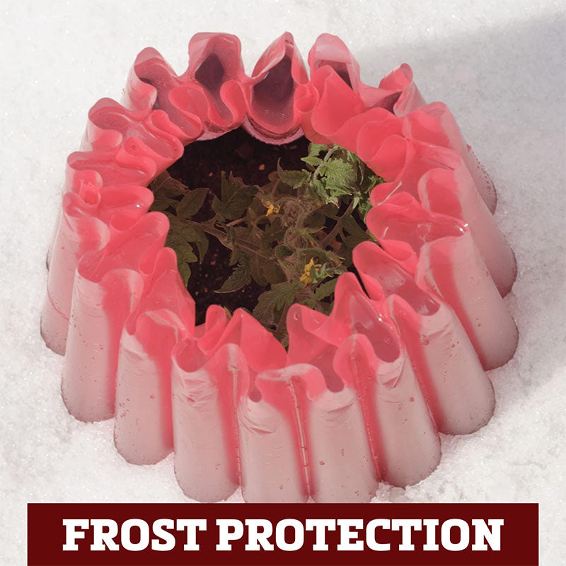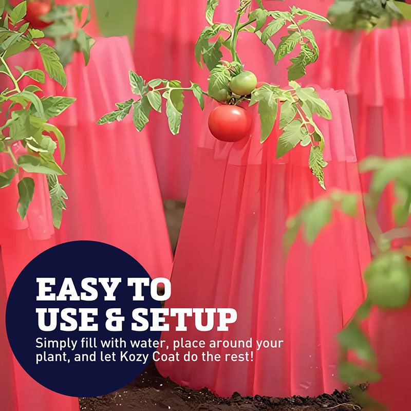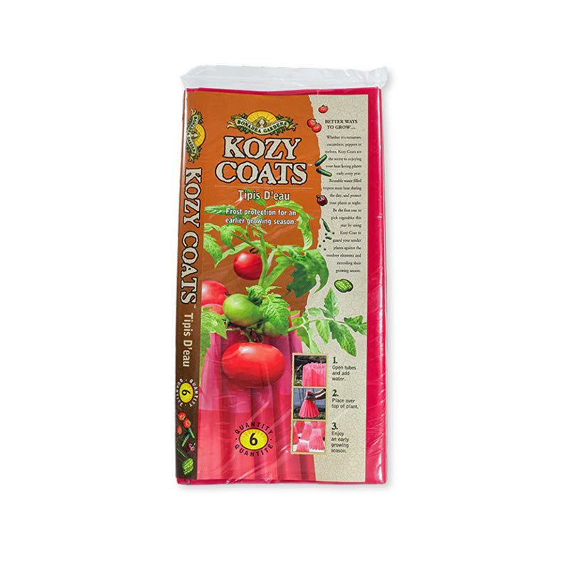 Kozy Coat Plant Protectors are self-standing plant protectors that can be filled with water to provide additional heat for plants.  They are made of UV-resistant plastic and fit around the plant. They can be used to protect plants from spring winds, rains, and unseasonable frost.