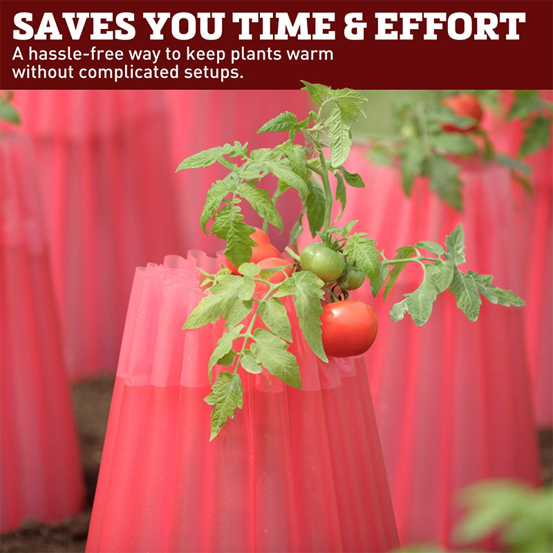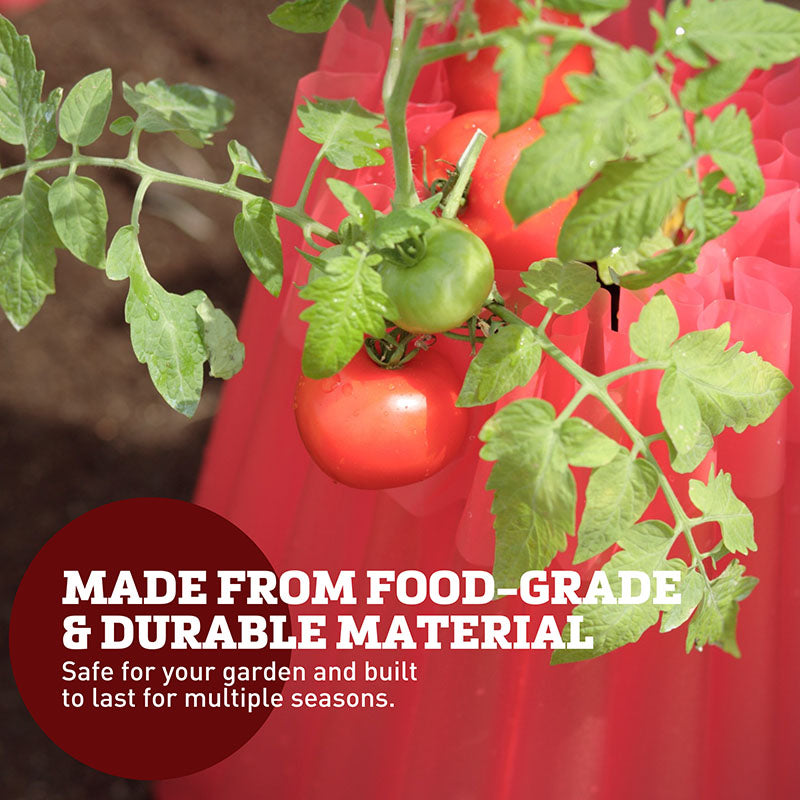 The red-tinted plastic of Kozy Coats produces stockier plants by providing that portion of the light wavelength spectrum that plants respond to. The unique open-lipped design allows easier-than-ever filling of the chambers by moving the hose end along the top, instead of opening each individual chamber.