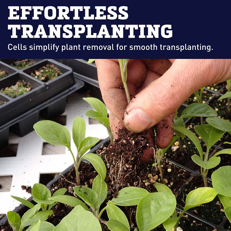 These heavy duty, semi-rigid Blackmore 128 deep cell plug trays allow you to easily separate species in one tray, reducing potential disease spread, and easing transplanting. The plug trays measure 11"x 21 1/4" and easily fit into our 1020 no drainage trays, web trays, and Perma-Nest trays (lip of plug trays rest on top of other trays so that cells are in the trays. Depending on cell size, the bottom of the cells may not touch bottom of tray.) Use along with our heat mats and light stands for seed starting success. Cell size measures 2" deep and 1 1/8" wide. Plug trays are BPA free and made of recyclable #6 polystyrene.