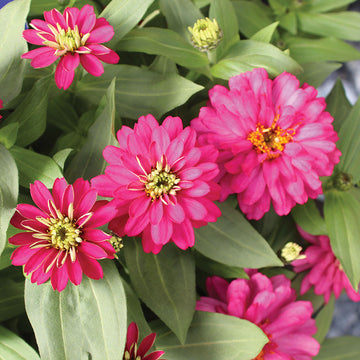 Zinnias in this group are a garden center staple. Growers benefit from their quick turnaround time from sowing to point of sale, and retailers know their vivid flower colors will quickly attract consumers. Different flower types and sizes abound, with bloom sizes ranging from 1-4". Sell in standard and premium packs, 4-6” pots, and single or mixed containers.