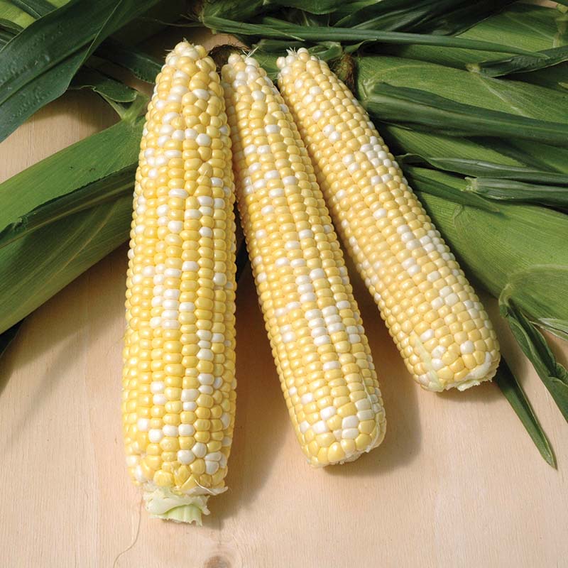 ACes sweet corn is a strong growing, supersweet bicolor that has shown good yield potential and wide adaptability. Its 8 to 8-1/2" ears have good eating quality and are set at 24" on sturdy and clean 6' plants. The ears are easy to snap and have an attractive dark green husk package that offers excellent tip cover and dark green flag leaves. ACes' ears have great eye-appeal, with excellent kernel color contrast, and fill well to the tip with 16-18 rows of shiny bicolor kernels. Resistant to the new rust strains Rp1-GI and intermediate resistance to NCLB. Isolation required.