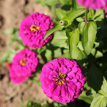 These taller zinnias come in a variety of flower sizes and with either fully double or semi-double dahlia-flowered bloom types. Great for the back of garden borders, and landscapes. This group also is the best type of zinnia for cut flowers. Sell in standard packs, 6”+ pots, and mixed containers.