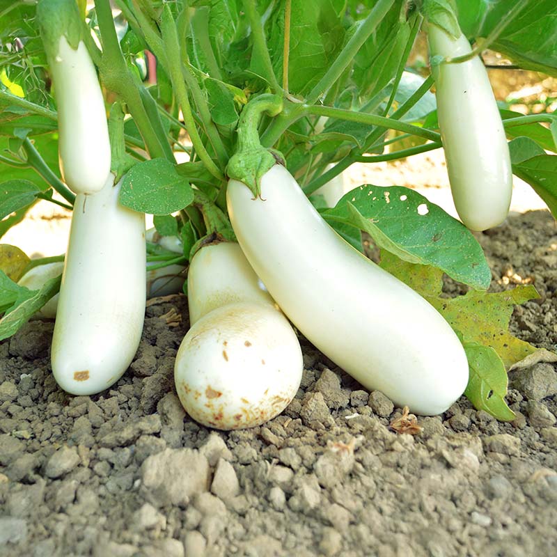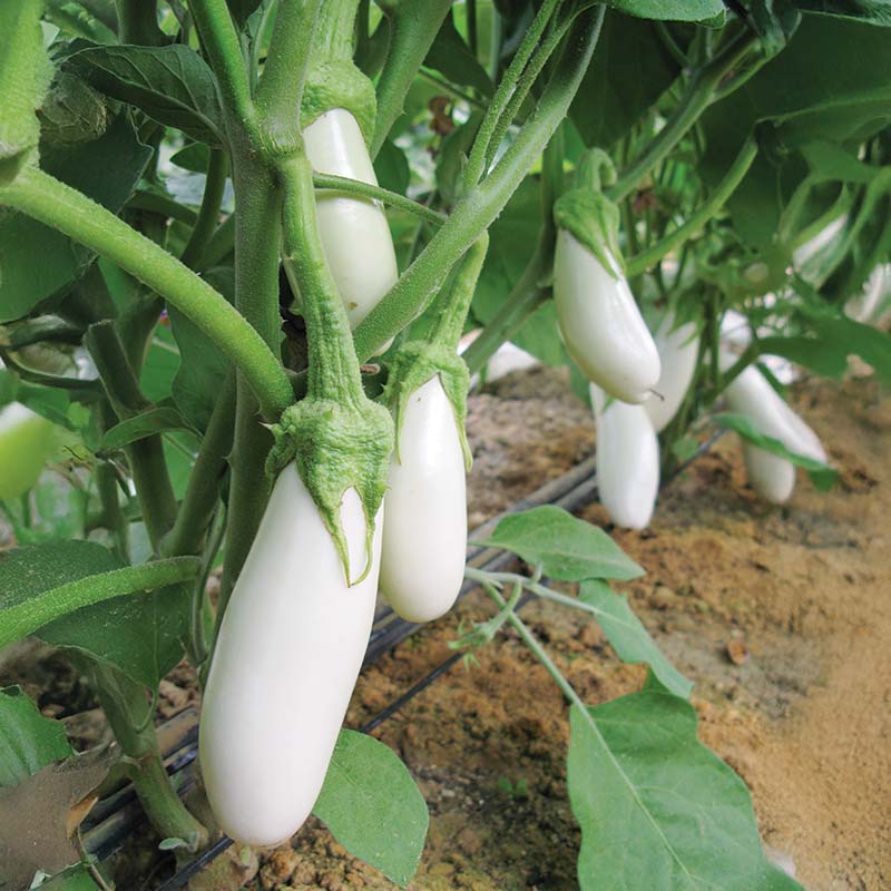 A warm season tender annual, the unique color makes it a stand out variety. With uniform, 7” long ivory fruits that are firm and meaty, it holds up well in cooking where others may turn to mush. Can be adapted to containers, for those with limited garden space or short growing seasons.