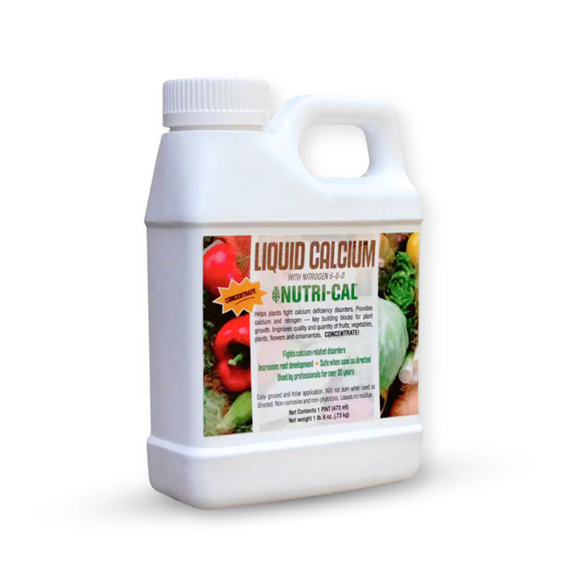 Eliminate blossom end rot! Nutri-Cal Liquid Calcium complex provides a unique delivery system which protects the calcium from forming an insoluble compound, enabling more efficient movement of calcium to the plant where it is needed most. Nutri-Cal® liquid calcium has more than 30 years of university testing and field experience supporting its claims. It is the best source of calcium for fruit, vegetables, ornamentals, and all living plants. Nutri-Cal® replaces traditional lime products and do not burn the plant. Nutri-Cal also improves fruit firmness and storage quality, prevents calcium related disorders like blossom-end rot, corking, fruit rot, hollow heart and more. Can be used as a foliage spray or as a drench. Available as a concentrate or ready to use. Concentrates mix 3 oz. per gallon for foliar spray.