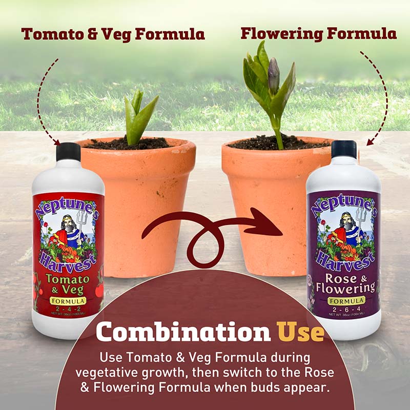 For best results: Rose & Flowering Formula should be used in combination with Tomato & Veg Formula as described below.