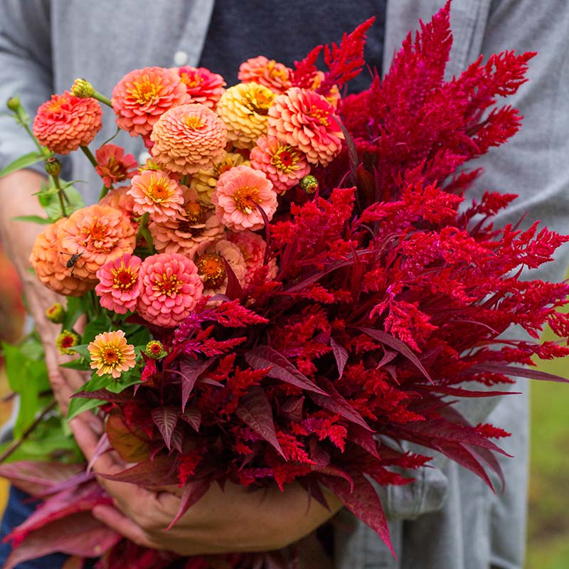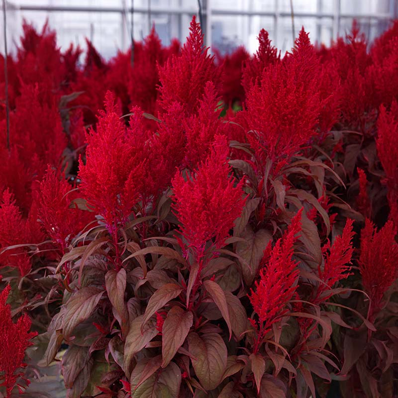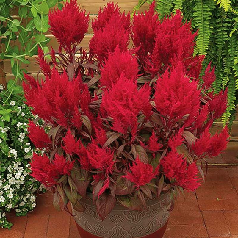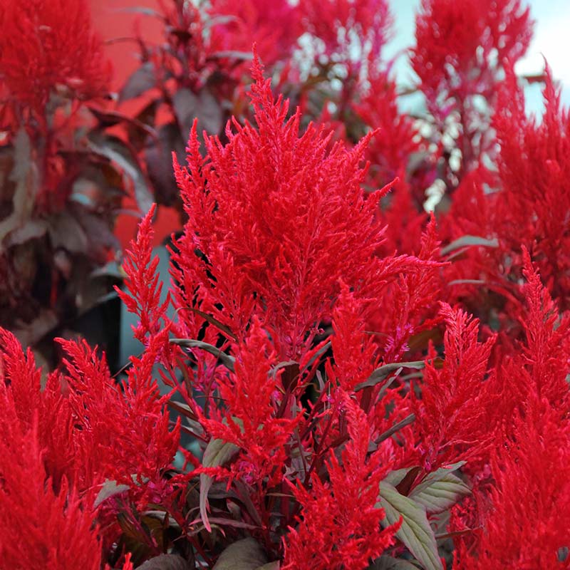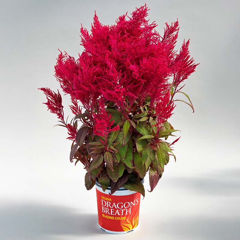 Dragon’s Breath was the talk of the California Spring trials circuit! Contrary to the low-growing early blooming celosia’s typically on the market, this variety is vigorous and blooms later but puts on a fantastic show of color for mid-late summer and early fall. Dragon's Breath flowers are a late flowering variety that can withstand hot and humid weather conditions and require minimal maintenance. The plant can thrive in situations with infrequent gardening, as it prefers soil that is more on the dry side, but young plants should still be well watered for better growth. Celosia Dragon's Breath seeds produce flowers with extra-large brilliant red plumes that are a lovely foil to the maroon foliage. Dragon’s Breath celosia is perfectly suited for 10” to gallon containers and looks marvelous in large landscape beds.
