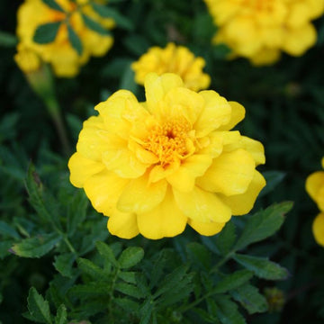 Longer blooming compared to African types, gardeners enjoy French marigolds up through frost. Ideal to use in flower beds, edges, mass plantings, and containers. Anemone types have flattened large outer petals that work into ruffled centers.