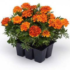 Longer blooming compared to African types, gardeners enjoy French marigolds up through frost. Ideal to use in flower beds, edges, mass plantings, and containers. Crested French marigolds have multiple layers of flattened outer petals and a short center tuft, or 'crest'.