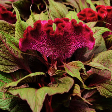 Celosias in this group are grown primarily for garden beds and containers, with heights that range from 6-20” tall, in both plumed and combed types.