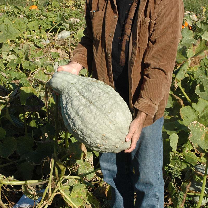 This is the original strain of the high quality Hubbard squash. Although smaller than the New England strain, it still produces the classic hubbard-shaped fruit and measures 12" long by 7" in diameter. The 7-10 lb. fruit have a blue-gray rind and a sweet, fine textured orange flesh.