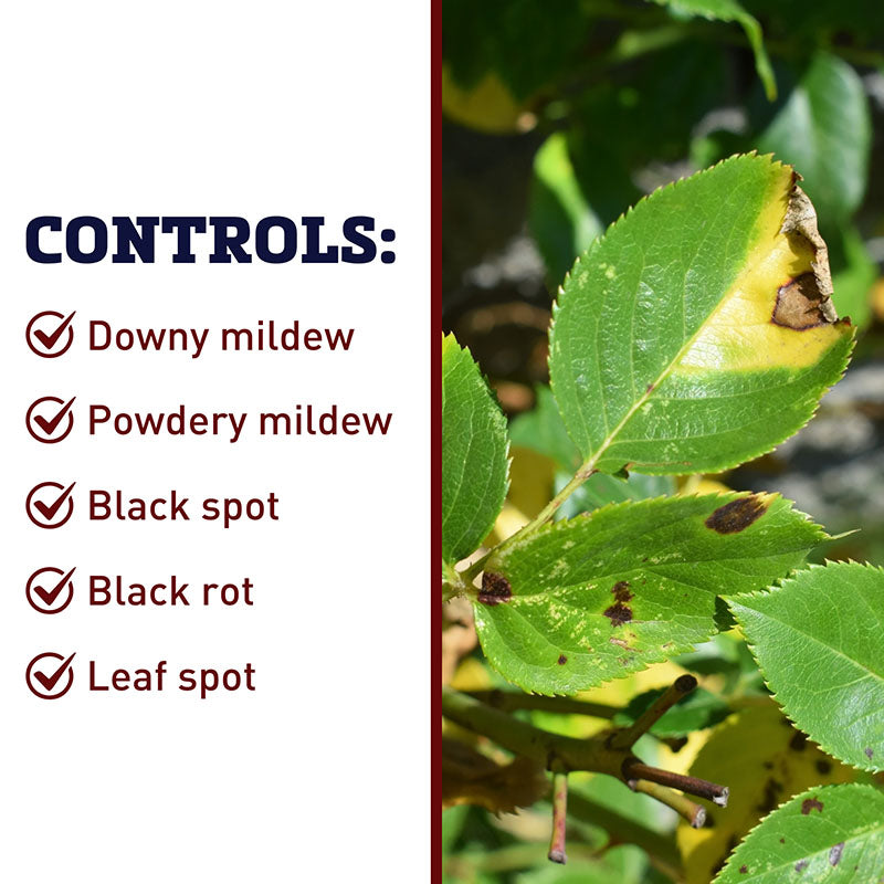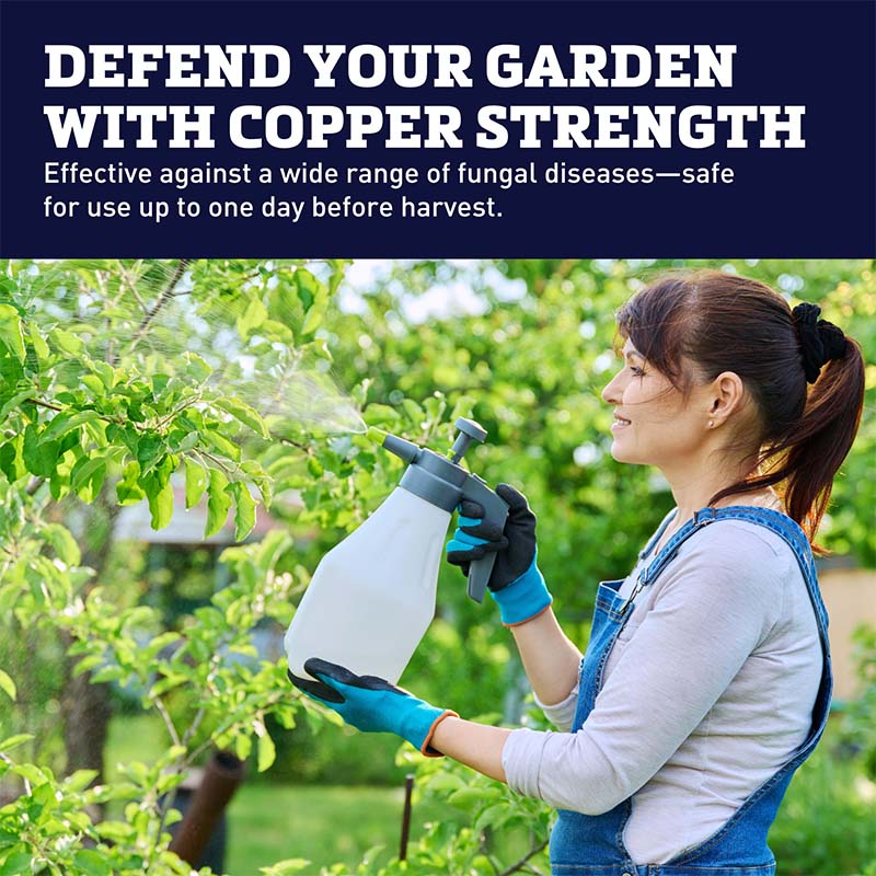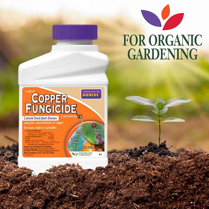Fungicide and bactericide! Bonide's patented formula allows for greatly expanded use, from turf to veggies and fruit to flowers. The Liquid Copper concentrate provides excellent control of blights, leaf spots, rusts, mildews, scab, anthracnose and mold with as little as 1-1/2 teaspoons per gallon. University studies have shown copper fungicides to be one of the most effective ways to treat late blight in organic systems. A natural way to control disease, Liquid Copper fungicide is also ideal for indoor use. Certified organic growers should consult their certifier before using copper products. Not available for sale to AK and DC.