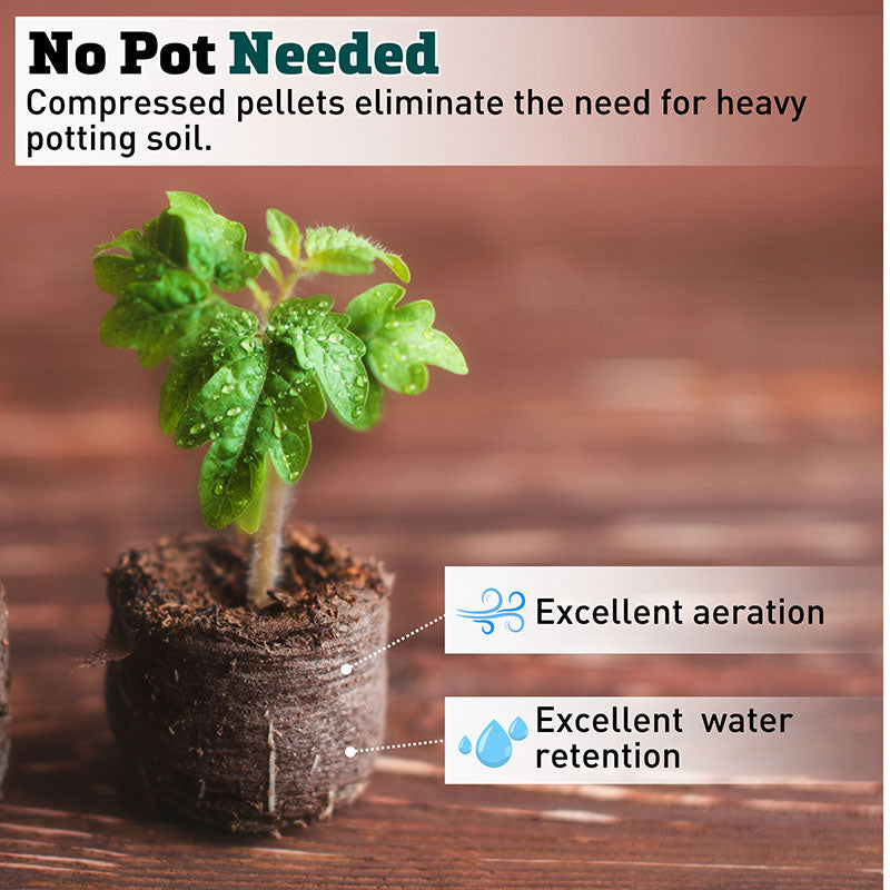 Jiffy Pellets are made of sterile peat growing medium, enclosed in a decomposable net. This net biodegrades in garden soil or compost, but it retains strength through the critical seedling and transplant stages. No pot is needed, and the growing medium offers great aeration and water retention. Speed and degree of decomposition will vary with soil or compost conditions. Each 1/4" thick compressed Jiffy peat pellet expands to a 1-1/2" diameter (36 mm) x 1-5/8" tall cylinder. Fit more pellets per sheet!
