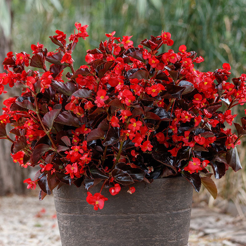 Enjoy high impact color with this exceptional garden performing series! Large plants are loaded with flowers, providing massive color that is perfect for large containers and landscapes. Color saturated blooms contrast beautifully with dark chocolate foliage. Sell in 6”+ pots, and single or mixed containers.