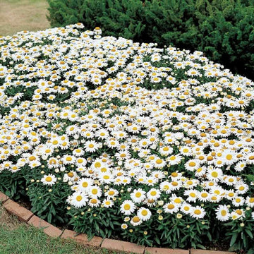 Leucanthemum used to fall under the genus Chrysanthemum, and has recently been changed to its own genus. Also known as Shasta Daisy, Leucanthemum is very popular because the cultivars produced come closest to what we know as the common daisy. Bright white daisy flowers are produced on upright plants, for an eye catching effect in the perennial garden. Many varieties are tall enough to be used for cut flower production, and there are also a few semi-double varieties that add additional interest to this genus.
