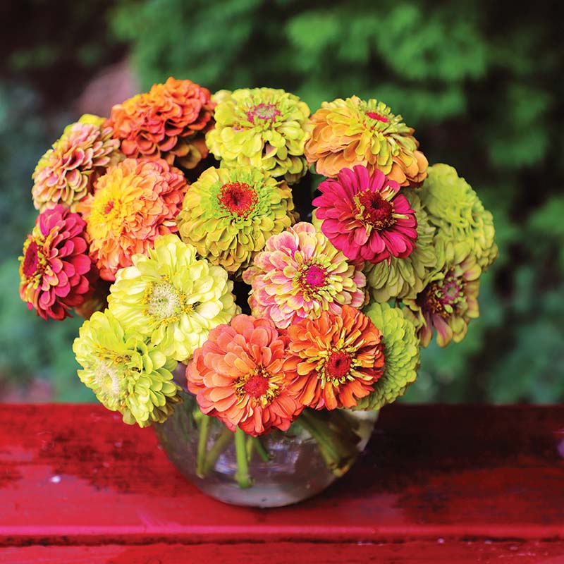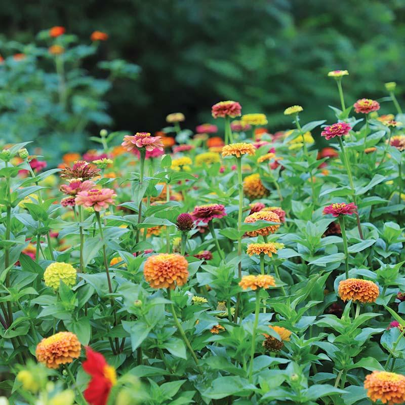 Zinnias are a perfect choice for border plants, large landscapes, and a favorite of many cut flower growers. Whether they are used in gardens or in the field, you can expect blooms right up to frost. Deadheading or pinching the central bloom before opening expedites secondary blooms.
