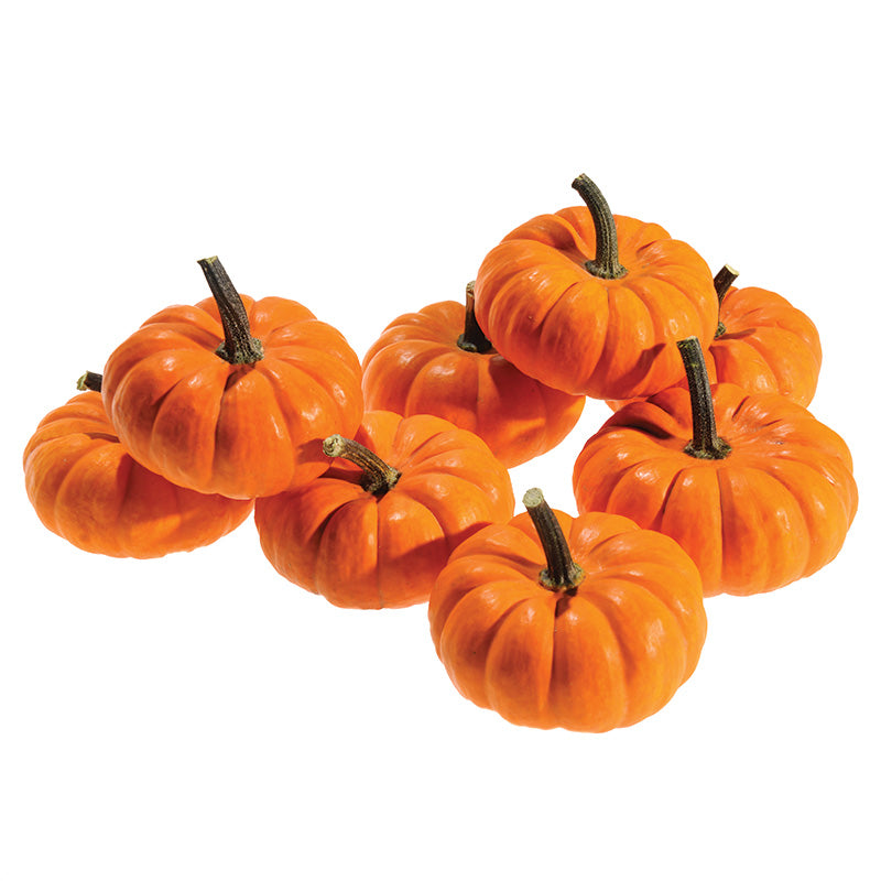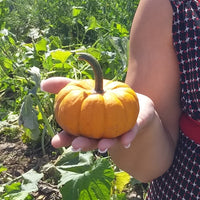 Jill-Be-Little is a miniature pumpkin and has a deep orange color, deep sutures and resistance to powdery mildew. The strong vines produce big yields of 3-4" diameter fruit that stand 2.5" high. Jill-Be-Little has a well-proportioned, dark stem, flat shape with a concaved top, and it will make a perfect miniature pumpkin for fall decorating. (P.V.P)