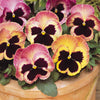 The Matrix series are extra-large flowering pansies with blossoms of 3.5 inches in size. A tight bloom window across the series makes scheduling easier. This low maintenance series holds up well in the heat and with more flowers per plant, is a favorite for display beds. Sunrise – Dusty pink and yellow with a dark rose blotch