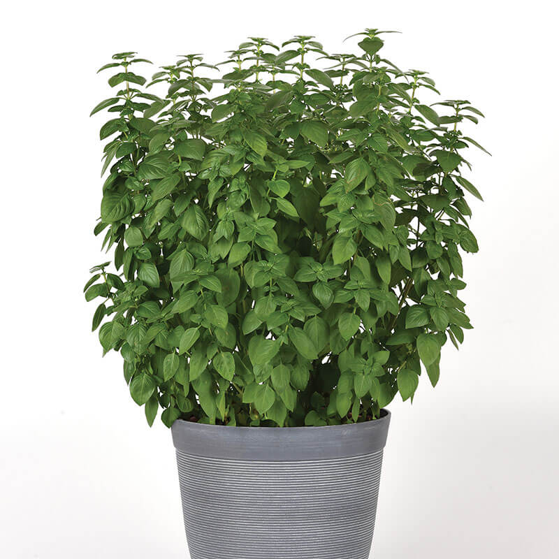 Upright plants have short internodes and a large volume of bright, lemon-flavored leaves. The vigorous plants will flower 6-8 weeks later than other lemon basils on the market. An excellent choice for both in ground and container plantings.