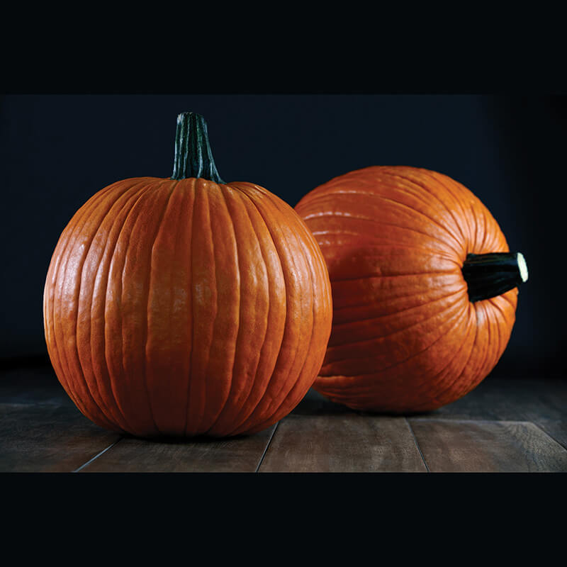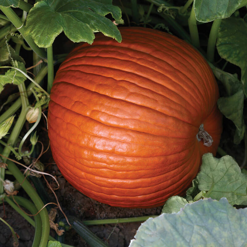 High yield potential for uniform, blocky round 11 x 13” fruit with dark orange color and a medium-deep rib. The 40 bin-count size is well-suited to roadside and wholesale markets. Semi-vine plants have intermediate resistance to PM.