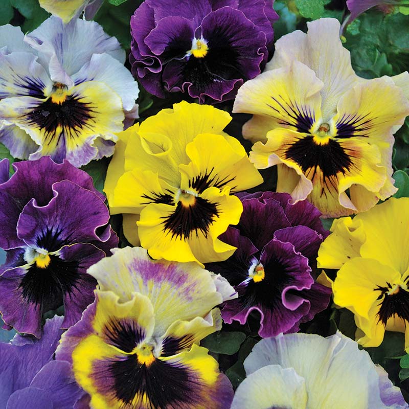 One of the rare pansies that offer an attractive frilly flower form, Frizzle Sizzle is an excellent item to kick off your sales season in the spring. The fancy flowers give plants that little bit of something extra that you won’t find in standard pansies. Mix of 8 colors in multiple color shades and patterns. Sell 4-5”+ pots, and single containers.