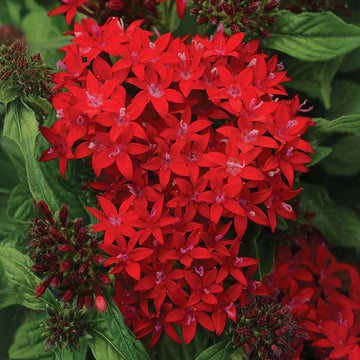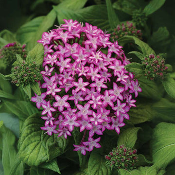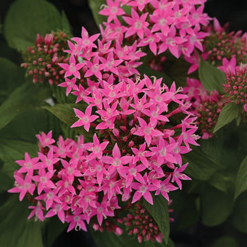 This heat loving plant is gaining in popularity as it becomes more recognized for use in both gardens and containers. Large clusters of pentas flowers are produced on busy plants, in colors that cover the lilac, pink, red, and rose spectrum. Pentas are also known to attract butterflies.