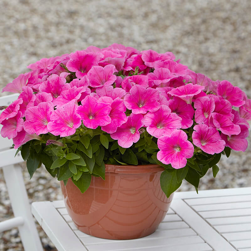 This brand-new Wave® series flowers at 10 hours daylength, and it will be ready at retail to kick off Easy Wave sales even earlier! With a manageable, uniform plant structure and vigor, this new series offers simple production to save on labor costs. The plants can be grown at lower PGR rates than Easy Wave, so we say it’s ‘Extra Easy’ Wave! Let their vibrant color spill from hanging baskets and pots for impulse sales. Plants maintain a full and lush look throughout the growing season.