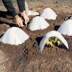 Harris Seeds' Point Bonded Row Covers and Blankets are called floating row covers because they are light enough to lie on top of plants without damaging them. They allow light and water to reach the plants while providing protection from frost, insects, and wind. While floating row covers do not need the support of a hoop or wire, they do need to be secured to the soil.