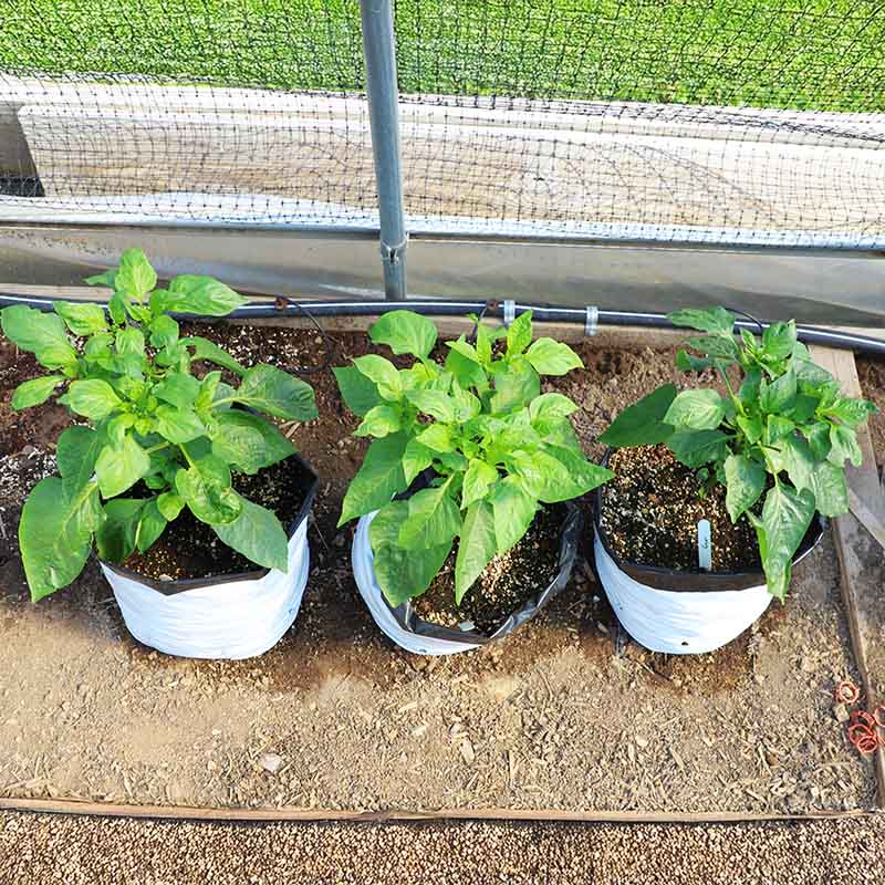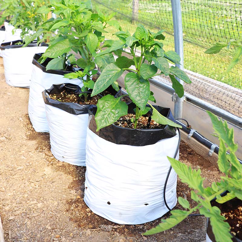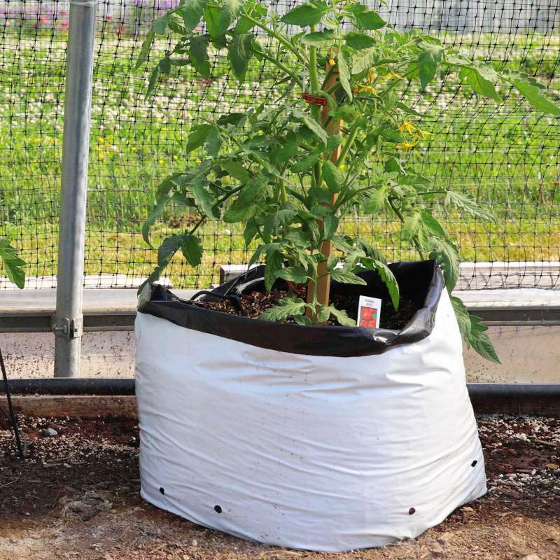The 10 gallon Grow Bags are 16.6 inches in diameter and 13 inches high when filled.