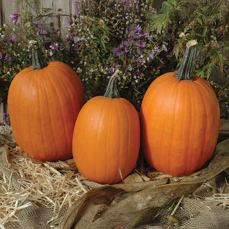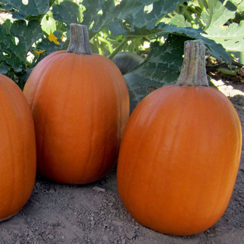 Darling is a unique pie pumpkin that brings a different shape to this class. 6-8 lb. fruit are produced on strong plants that have intermediate resistance to Powdery Mildew. Darling's fruit have an upright, barrel shape, a dark orange color and slight ribbing. The handles are well-proportioned to the fruit size and are well-rooted.