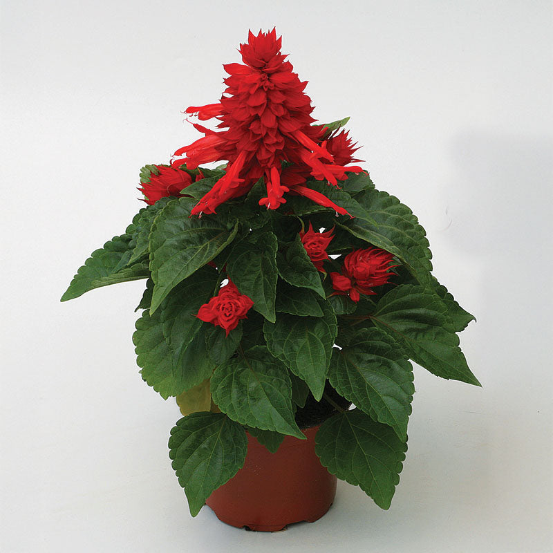 Long lasting color is king with salvia, and this dwarf variety fits the bill! Day length neutral Mojave packs a punch with the richest red color we’ve ever seen. Earlier flowering than other dwarf salvia in its class, numerous flower spikes are produced on plants with attractive dark green foliage. The extra branching habit and unrivaled heat tolerance ensure continuous blooming throughout the gardening season.