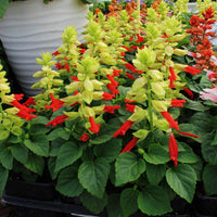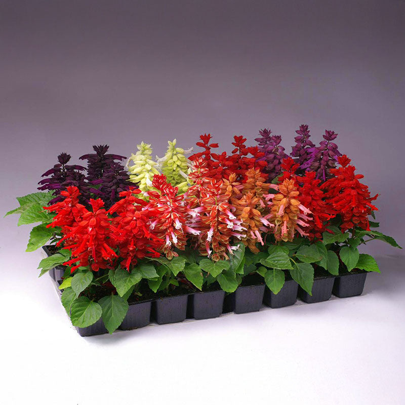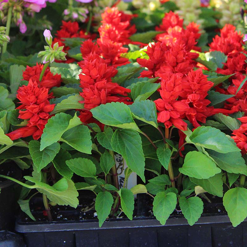 Reddy Bright Red caught our eye in pack trials a few years ago with its colorful, stocky spikes on compact genetically dwarf plants. Now there is a complete range of colors that are featured in the mix where densely packed florets contrast nicely against dark green foliage. The plant habit makes the Reddy series a good salvia for pack production.