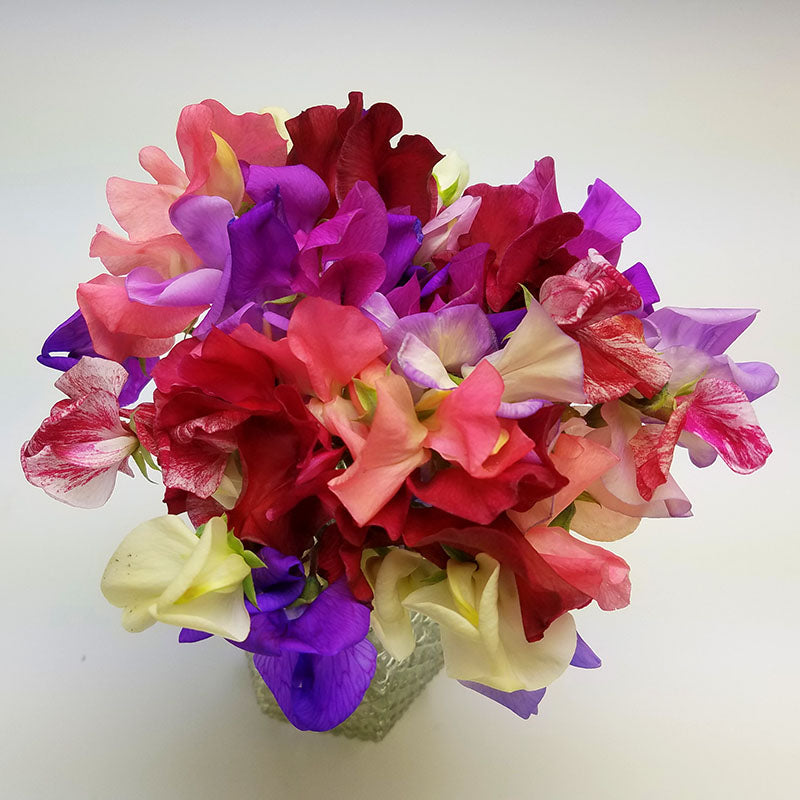 Start your flower garden season with the balmy fragrance of Sweet Peas! Although Sweet Peas are considered an old-fashioned garden favorite, their delicate fragrance and attractive habit appeal to gardeners of ALL ages! Incense Mix is aptly named because it is a selection of the most fragrant cutting varieties available. Like all Sweet Peas, it can be sown directly outdoors in early spring, well ahead of most flowering annuals. We suggest planting along fences to give the vines a foundation for climbing. Trellis and garden obelisks are also a popular means of displaying their beauty and fragrance. Sweet Peas also make a wonderful cut flower, and Incense Mix was selected with cutting in mind, so grow enough to enjoy both outdoor and in!
