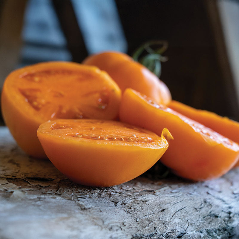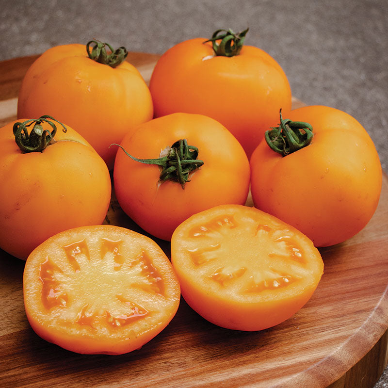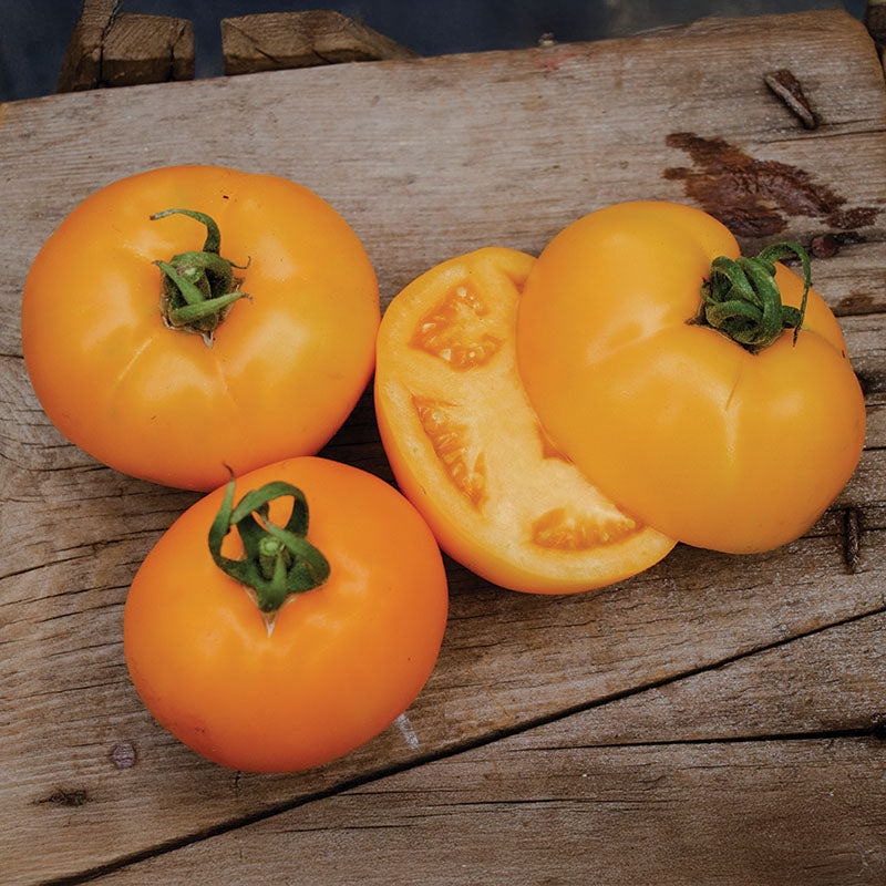 A productive semi-determinate tomato that sets beautiful glossy deep orange fruit. The firm round fruit weigh 6-7 oz. and have excellent flavor and high levels of beta carotene. Plants perform well in open field and protected culture and carry intermediate resistance to F1, F2, Vt, and TMV.
