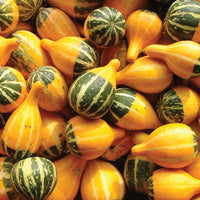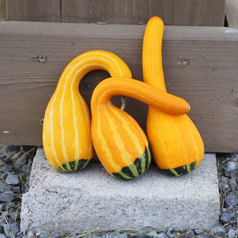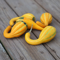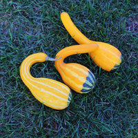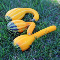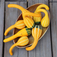 Spoon gourds are ideal for ornamental use and handmade crafts like decorative gourd ladles. Group them into an eye-catching fall display with other brightly colored pumpkin and squash, or cure, cut and finish them for a unique gift. Once established, the vigorous growth habit and high adaptability to a wide range of soils make this varietal perfect for any grower. Plan to allow room for vining, or train plants on a trellis to conserve space.