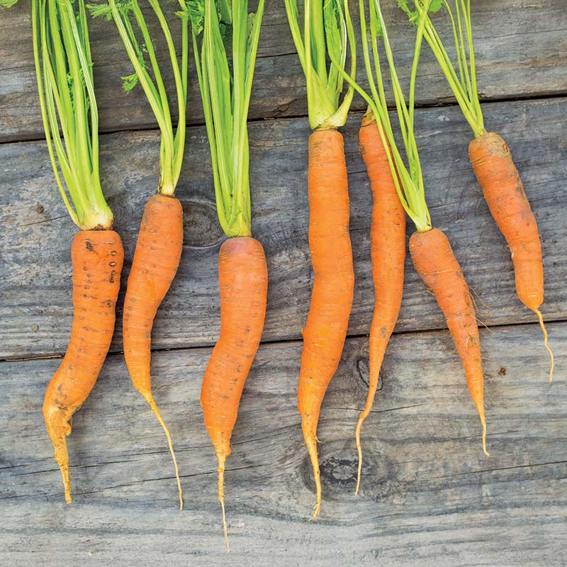 This excellent Nantes carrot is known for its nice uniform shape with strong tops and good flavor. Fuerte offers high yields of medium-orange blunt-tipped cylindrical roots with some shoulder.