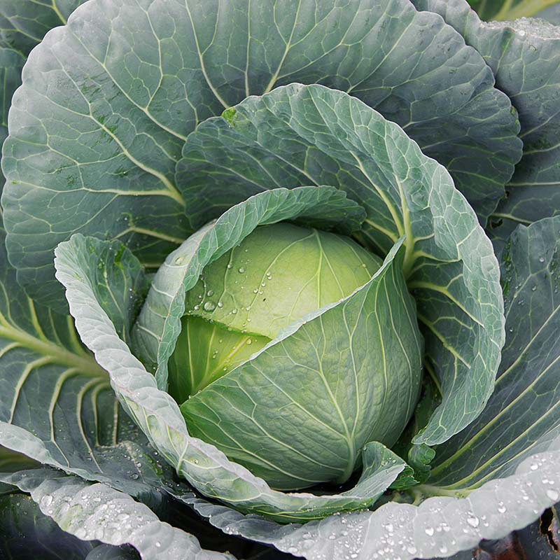 Outstanding field performance. Bravo cabbage, a rugged hybrid, has performed well from the Deep South in winter to the North in summer. The large, round cabbage heads are uniform and a beautiful blue-green color. Use close spacing (10-12") for market and wide spacing (18-24") for sauerkraut.
