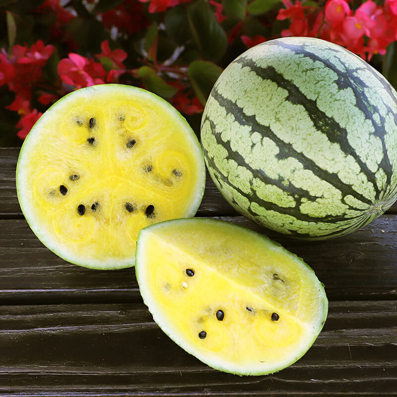 Yellow Doll Watermelon seeds for sale at Harris Seeds result in early-season hybrid watermelons that will have your customers raving over their sweetness. The semi-compact vines produce round to oval medium green melons with dark green stripes, averaging 5 to 7 pounds each. Its high quality is recommended for local sales, but because of its thin rind, it’s not recommended for shipping.