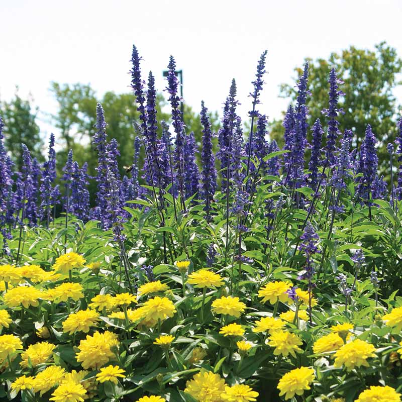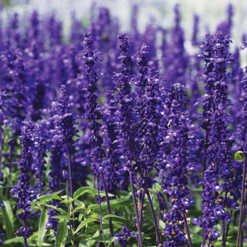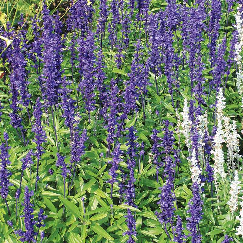 The 8" medium blue flower spikes top tall, bushy plants. This outstanding garden performer bloom in the pack.