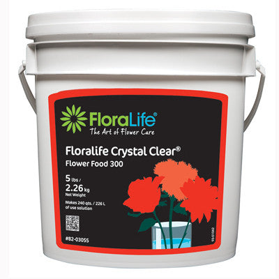 Quickly hydrate your flowers with this higher sugar concentration. Growers use it for a quicker method of opening flowers. A concentrated citric acid based fresh flower food, Floralife Crystal Clear provides all necessary ingredients to hydrate fresh flowers, for the maximum consumer enjoyment. Use as a storage or vase solution, and in glass, plastic or ceramic containers. 5 lbs. makes 250 quarts liquid.