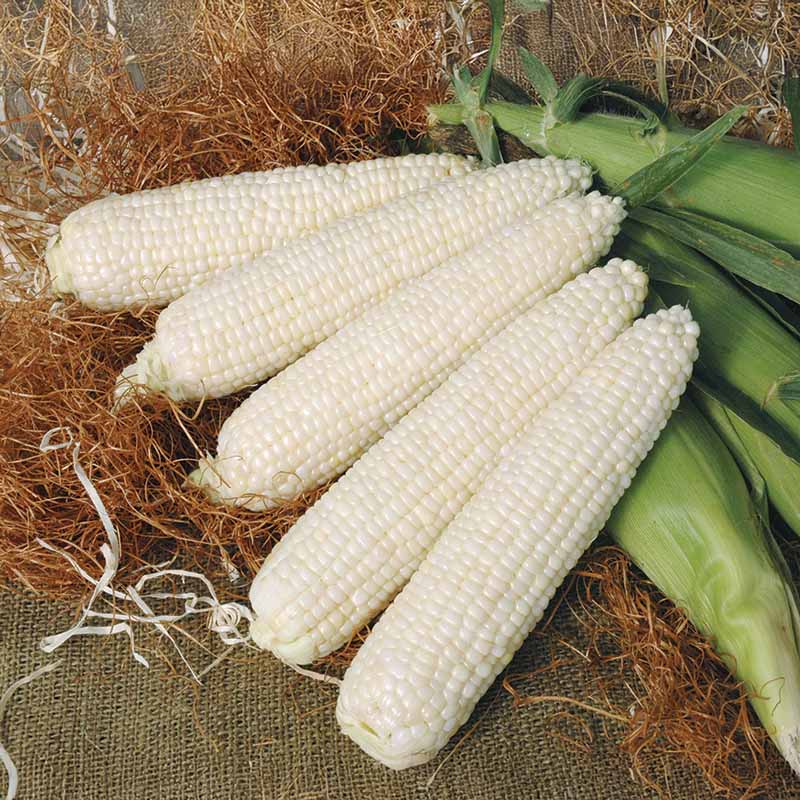 This full season white synergistic SE sweet corn grow late into the season. Mattapoisett sweet corn seeds produce 8" long, cylindrical ears that taper to the tip. The sweet and tender kernels fill the ear well to the tip in 16-18 straight rows. The ears are set at 18-20" on sturdy and clean 6-1/2' plants. Its dark green husk offers tight cover and good tip protection to the ears, and is covered with attractive flag leaves. Intermediate resistance to Northern corn leaf blight, Common Rust and Stewart's Bacterial Wilt.