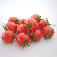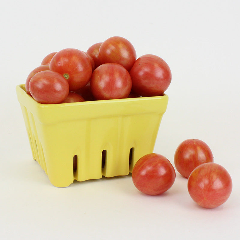 70 days from transplant. This 1 - 1½” round cherry tomato is sure to create excitement with its extraordinary beauty and superb flavor. Fruits resist cracking and are striped with pink and yellow. This new color is great for mixed pints and is extremely versatile in the kitchen. Well suited for outdoor growing or protected culture.