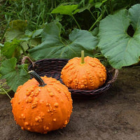 Sanchez pumpkin is a one-of-a-kind pumpkin with it's unique squatty shape and warts. Full vines produce good yields of 3-6 lb. fruit that measure 6-7" wide x 4-5" tall. The bright orange pumpkins have moderate to heavy warting and thin stems. This is a great novelty variety to offer for fall sales. Note: There may be a small percentage of gourd off types in this variety.