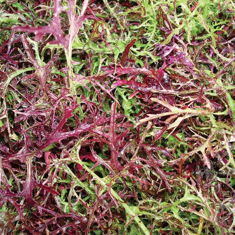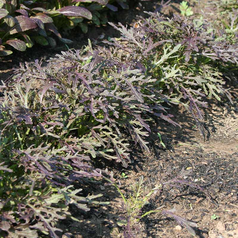 This green is ideal for harvest at a baby leaf stage when it has its best dark red color. It can be sold as a specialty Asian green or blended into a salad mix to add a mustardy flavor, texture and red color. The leaves are deeply serrated and produce their best color during periods of cool growing temperatures.