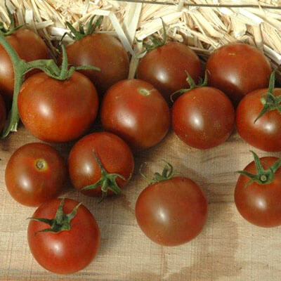 These exceptionally sweet and flavorful, chocolate colored cherry tomatoes have your customers coming back and begging for more. The large, indeterminate plants set their fruit in clusters like grape tomatoes do. The large cherry size fruit measure 1-1/4" in diameter and have a taste and flavor that rival heirloom varieties. Resistant to Tomato Mosaic Virus.