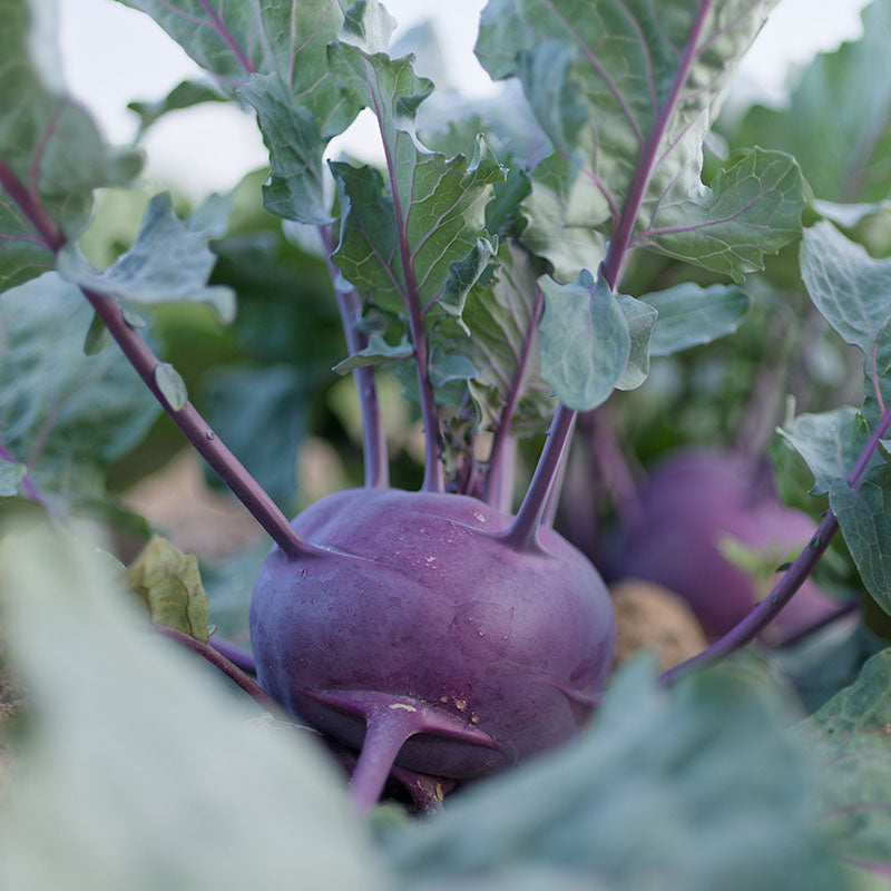 This is the best purple kohlrabi available. High yields of smooth, round to globe shaped fruits offer white interiors with sweet mild flavor. Start harvesting at the 3” stage, but excellent field holding ability allows for longer harvests of large sized bulbs with high interior quality. Grow along with Korist F1 for a multi-colored assortment. Intermediate Resistance to Black Rot.