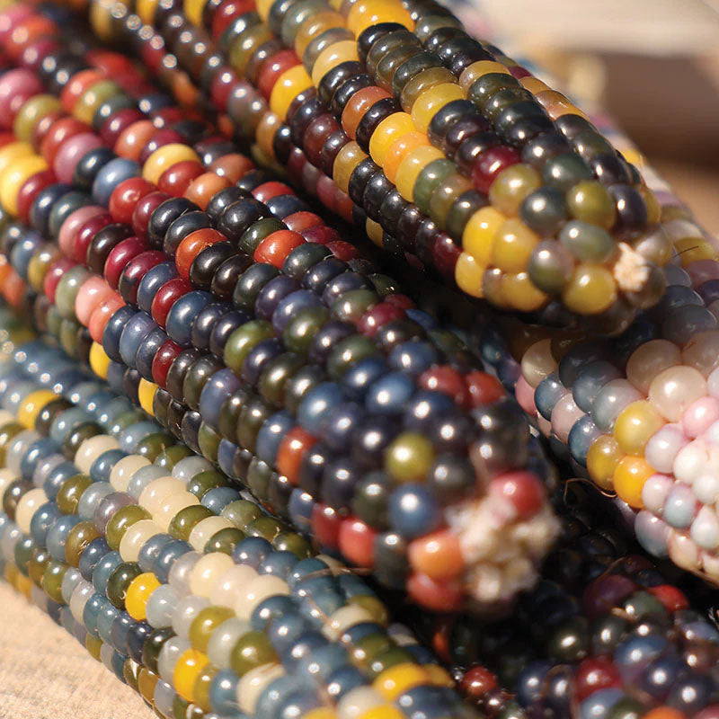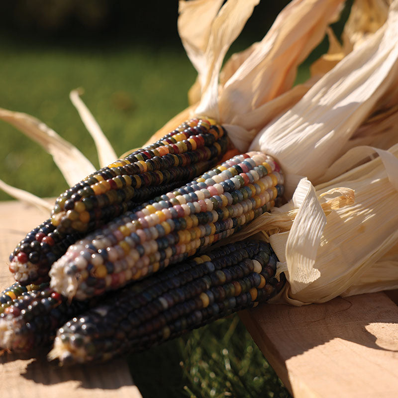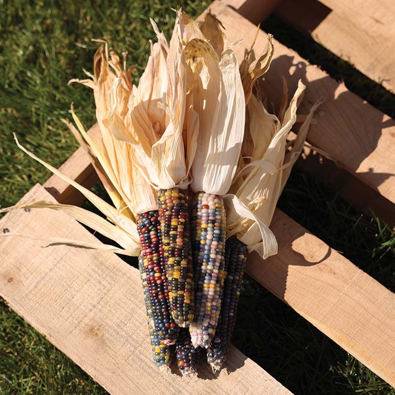 The name says it all, this variety is a gem! The iridescent, shiny, glass-like kernels will glisten in the fall sunshine. Your customers won’t believe it’s an ornamental corn, and not a Chihuly creation. Its beautiful, unique appearance is generating plenty of social media buzz. The multi-colored kernels can be popped or ground into flour. Sturdy plants grow 6 - 8’ tall and produce an abundance of 7 - 8” long ears. Extremely productive.